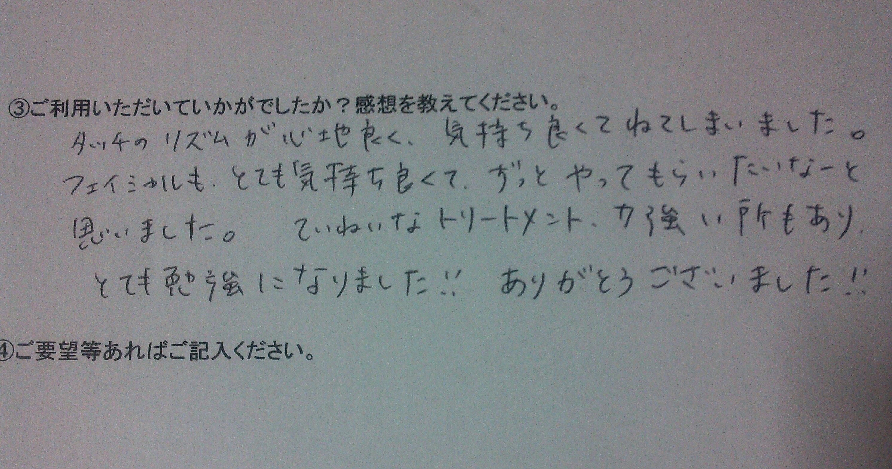 同じセラピストから「とても気持ち良かった」という感想をいただけてとっても嬉しかったです(^^♪
